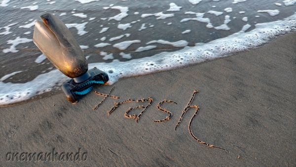 There I was, knee deep in early clean up searching and pondering a surfer and beach cleaner-upper name. Loud and clear came "onemankando." Humbly, I took this rite of passage name. It seemed to fit, because I was really curious to see how much trash I could pick up. Alone. Plus, at the time, and almost all others, there was nobody else out picking up beach trash or on PCH. The thought of creating artwork came later.