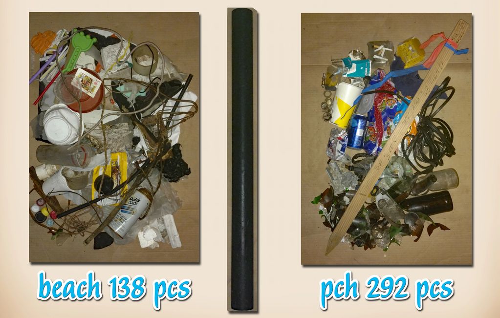 As mentioned previously, many of the items picked up were retained to accompany my photography presentations. Examples of this are the paint can (beach) and wooden stick (PCH).